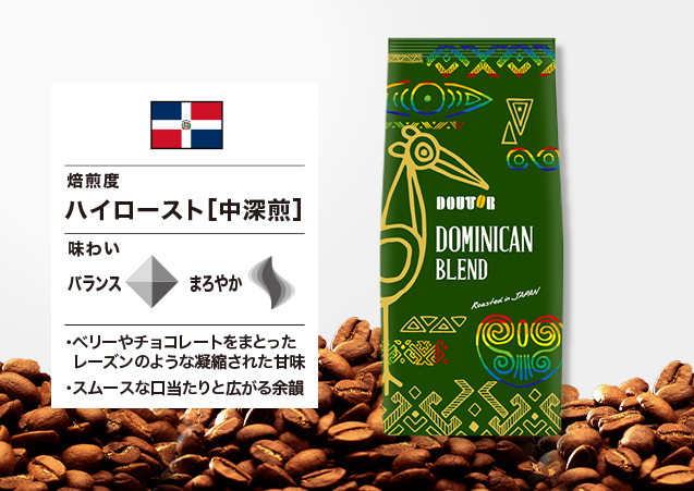 ドトールコーヒーでは、年に一度「ドミニカンブレンド」を数量限定で発売しています。パッケージには、ドミニカ共和国の先住民「タイノ族」が残したモチーフが鮮やかな色彩であしらわれています。