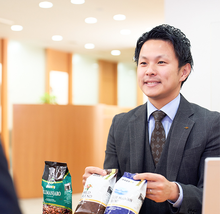 時には開発チームの一員として、インスタントコーヒーやドリップコーヒーの新商品企画に参加することもあります。立場や年齢に関係なく自由に意見を出し合い、みんなで練ったアイデアを形にしていく過程は、営業活動とは違ったやりがいがあります。