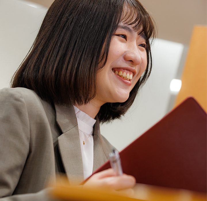 入社当初から「いつか新店の立ち上げに挑戦したい」という思いがありました。ある日、スーパーバイザーから「新店の立ち上げのチャンスが来るかもしれない」と話を聞かされて、その場で「挑戦してみたいです!」と伝えました。その経験を通じて得た「自分でチャンスを掴む」姿勢は、現在の仕事にも生きています。また、人事への異動を希望したのも、自分の成長を求めてのことでした。これまでにたくさん経験した「上司や先輩が親身にサポートしてくれた」という体験を後輩たちにも伝えたい、という思いで、新卒採用に向き合っています。学生たちが悩みを解決し、自分に自信を持って社会に踏み出せるよう、寄り添いながらサポートしています。