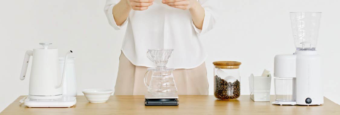 ケトル、ドリッパー(ハリオ)、サーバー、専用のペーパーフィルター、