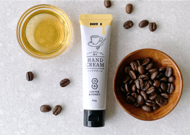 廃棄予定のコーヒーを、新しいかたちで活かせないか——そんなアップサイクルの発想から生まれたのが、ハンドクリームです。コーヒーの製造過程で廃棄されるコーヒー豆の一部を有効活用し、コーヒー豆をじっくりと蒸留してつくられた完全オリジナル成分「アラビアコーヒーノキ種子水」を含むコーヒー由来成分(※)を70%以上配合しています。