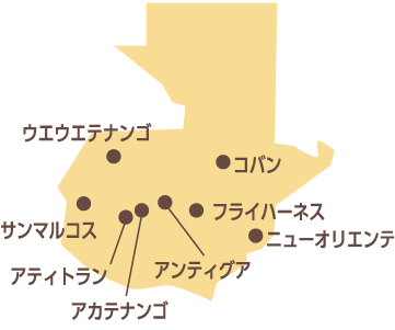 グアテマラ国立コーヒー協会(アナカフェ)の管理下にある8つのエリアでバラエティ豊かなコーヒーが栽培されており、中米随一の品質を誇ります。高品質のものは小粒の硬い豆で酸味、香味が強いことが特徴です。